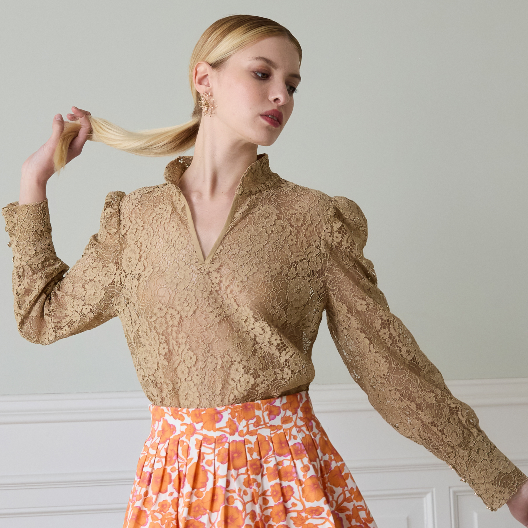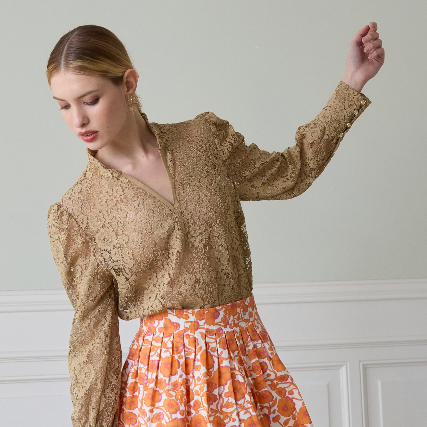Le chemisier Fergana capture l'essence du romantisme et reflète la sophistication de l'esprit KÔYÉ. Réalisé avec un tissu façon dentelle, raffiné, cette pièce est une véritable ode à la féminité. L'encolure en V délicate s'associe à la transparence suggestive des manches bouffantes pour dévoiler la peau avec subtilité, offrant ainsi un jeu de séduction discret et élégant.