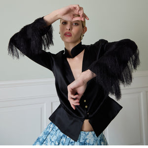 Iconique de la maison KÔYÉ, la Samarcande bleue incarne l’élégance intemporelle et la chaleur d’un velours de coton d’exception. Sa texture profonde et raffinée se déploie dans une coupe subtilement féminine, où le col cheminée couture souligne la noblesse de la silhouette. La ligne s’évase délicatement vers le bas, structurée par des plis à la taille qui dessinent une allure harmonieuse. Les manches longues apportent une sophistication affirmée, tandis qu’une rangée de boutons en métal doré illumine la pièce d’un éclat précieux, signature de son caractère unique.